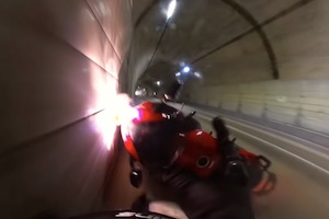 バイクでも寝ちゃう事ってあるんだなあ。宮城県大崎市の国道108号線、大森トンネルを走行中に居眠り運転により単独事故を起こしてしまったスズキ・GSX1300Rハヤブサ乗りのヘルメットカメラです。それにしてもプロテクターってすごいんだね。60km/hで走行中にこんな事故を起こしても軽症で済むんだ。あと360度カメラの映像がおもろい。