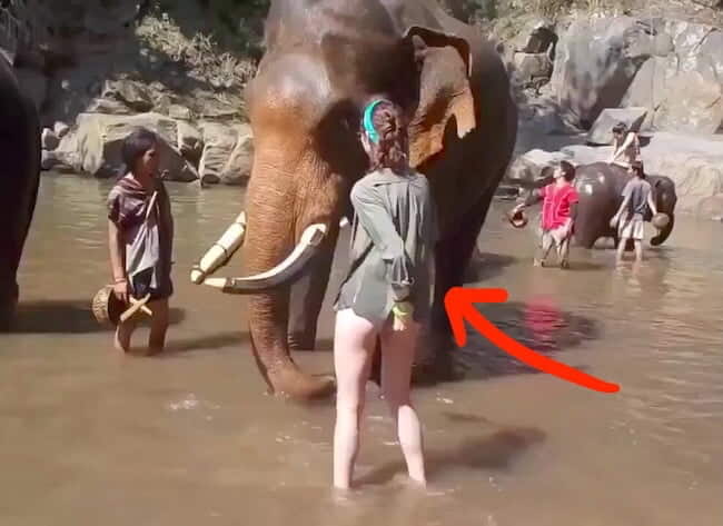 【衝撃映像】セクシーな白人水着女子がインドゾウに接近 ⇒ 現地の人々が凍りついた瞬間…
