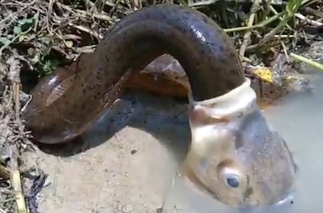 【衝撃映像】ウナギさん、自分より小さな生き物に丸飲みにされるまでの一部始終がヤバい