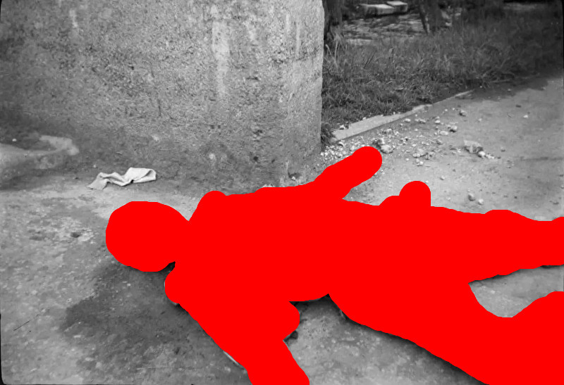 gif_animation ナチス強制収容所より、珍しい1枚。看守が囚人に殴り殺された報復の現場・・・死と隣り合わせの扱いを受けていた囚人達の、物凄い怒りが伝わってくる。